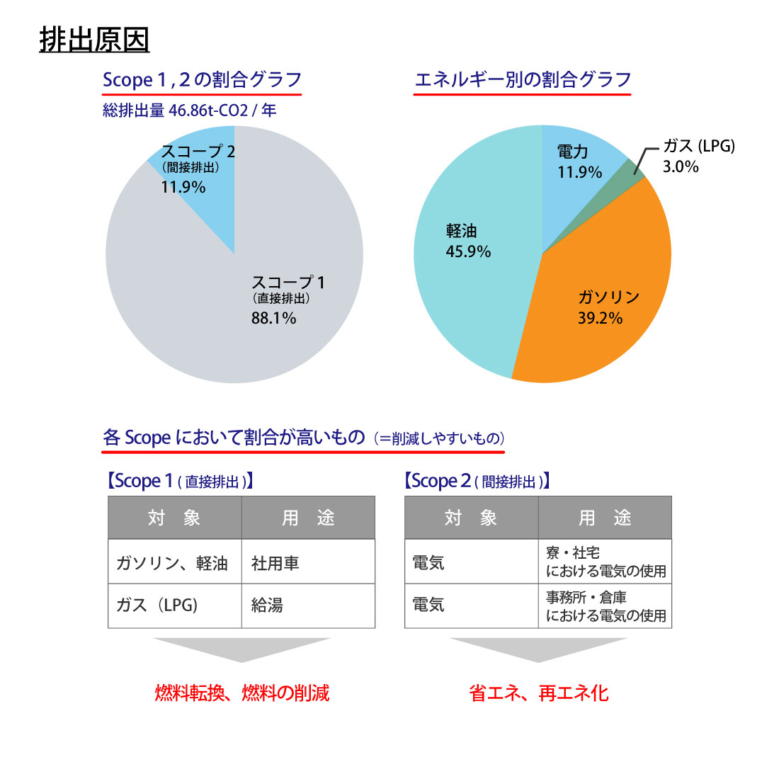 Scope1(直接排出)からScope2(間接排出)への移行を積極的に行い、またScope1(直接排出)、Scope2(間接排出)共に削減することを実現致します。これらの活動を通じて、企業としての社会的責任を果たすと同時に、未来志向のインフラ整備を支えています。